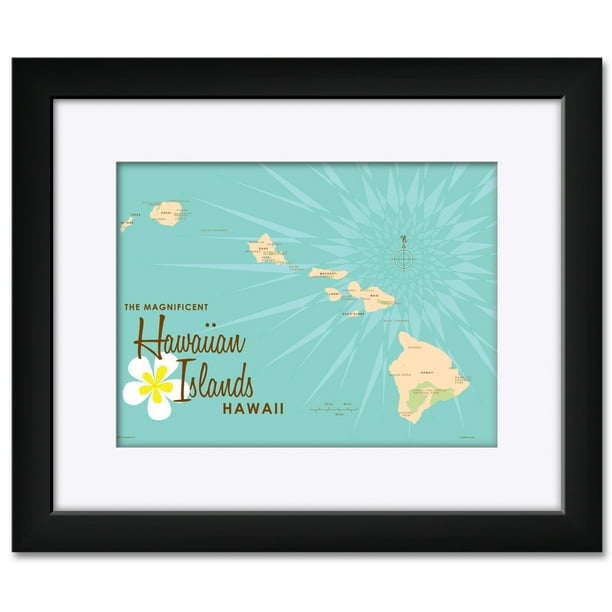 Hawaiian Islands Turquoise Map Framed Matted Art Print By Lakebound Print Size 9 X 12 Framed Art Size 15 X 19 Walmart Com