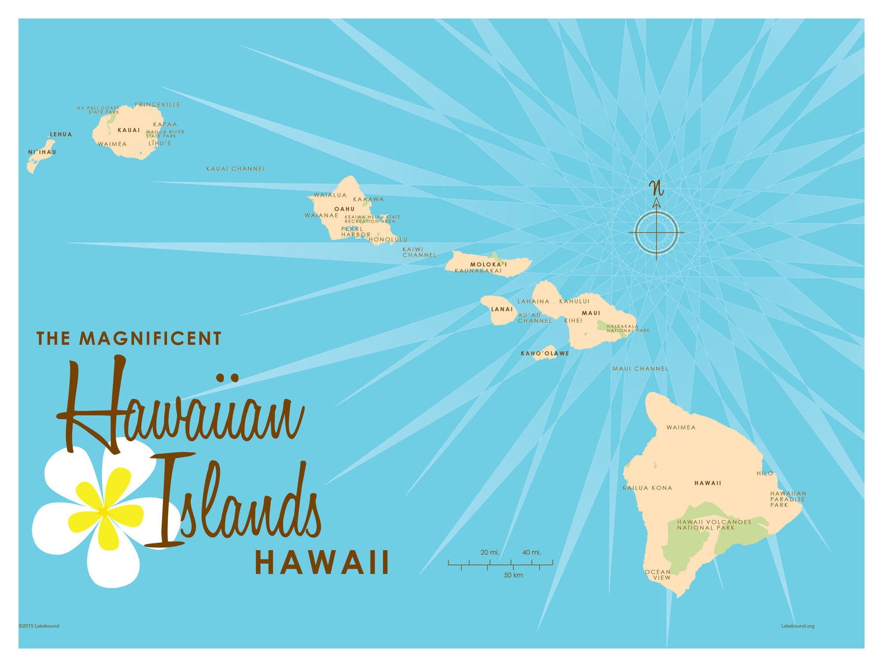 Hawaiian Islands Blue Map Vintage Style Art Print By Lakebound 9 X 12 Walmart Com