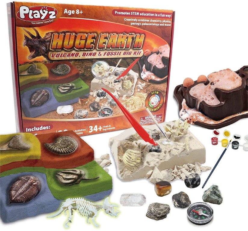 Amazon Com Playz Huge Earth Volcano Dinosaur Fossil Dig Kit Stem Science Kit For Kids Age 8 9 10 11 12 13 Years Old 46 Fun Safe Geology Experiments
