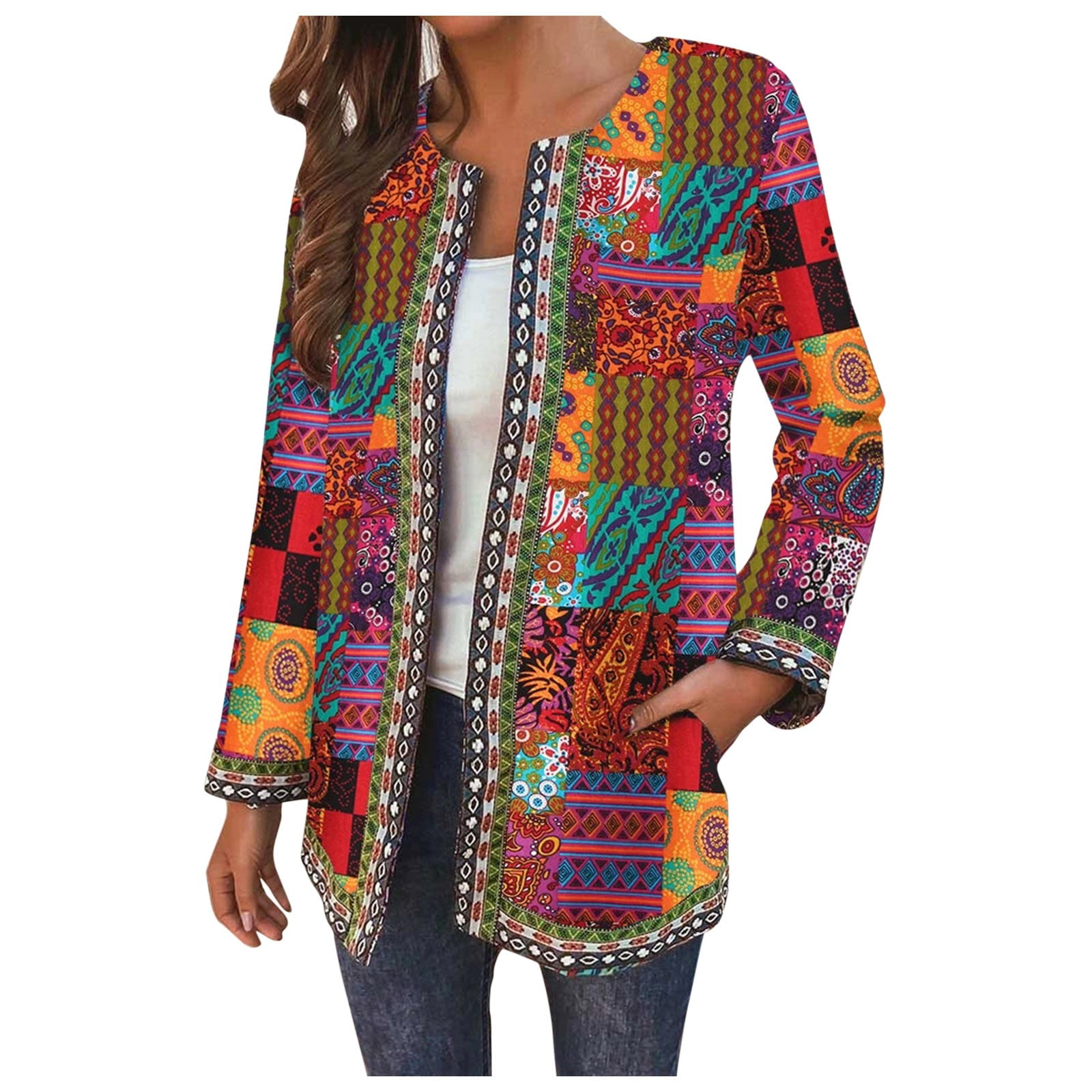 Fsqjgq Compression Shirts For Women Long Sleeve Women S Boho Cardigan Fashion Leisure Retro Print Loose Long Sleeve Coat With Pockets Shirt Ladies Linen Yellow L Walmart Com